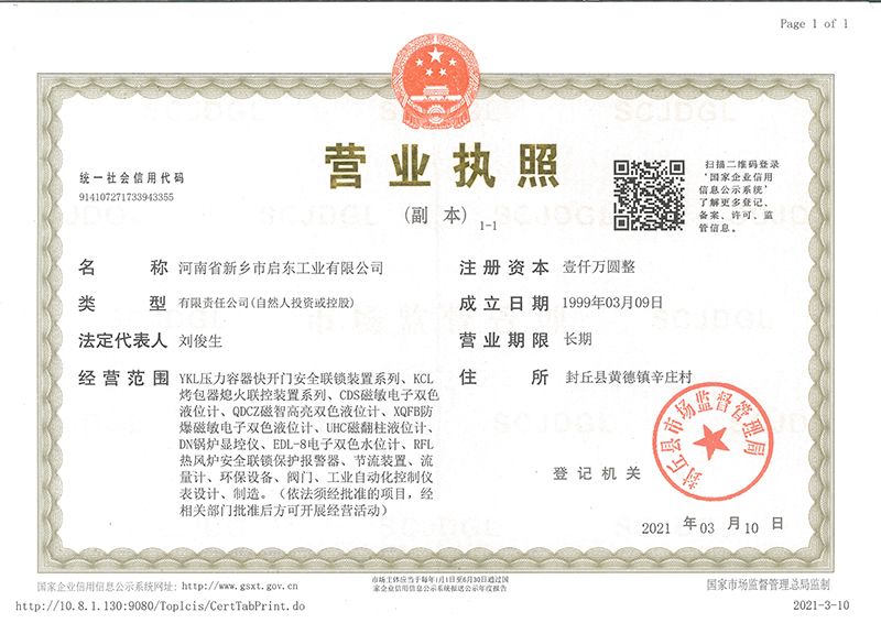 河南省新鄉(xiāng)市啟東工業(yè)有限公司始建于1987年,是專注研發(fā)、生產(chǎn)自動化儀器儀表(主要與壓力容器、鍋爐等容器配套使用)的廠家。主要產(chǎn)品有液位計(磁敏雙色型、磁翻柱型等)系列、烤包器熄火聯(lián)控裝置系列、壓力容器快開門安全聯(lián)鎖保護(hù)裝置系列、鍋爐報警器系列。二十多年來,公司產(chǎn)品暢銷國內(nèi)并遠(yuǎn)銷俄羅斯、蒙古與東南亞,深得廣大用戶的信賴和好評。我們多年來致力于自動化儀器儀表的研制生產(chǎn),公司現(xiàn)具有完善的生產(chǎn)、試驗、檢測手段和設(shè)備。科技創(chuàng)新、誠信服務(wù),是我們不變的經(jīng)營理念,我們將以強(qiáng)有力的技術(shù)支持及售后竭誠為客戶提供良好的服務(wù)。  2012年我公司成功研發(fā)了KCL系列烤包器熄火聯(lián)控裝置,并于2013年2月2日榮獲中華人民共和國國家知識產(chǎn)權(quán)局辦法的《實用新型**證書》<**號:2021202257735>該產(chǎn)品廣泛應(yīng)用于唐鋼等大型鋼鐵企業(yè),為烤包器安全作業(yè)提供了有力的保障。  2002年我公司成功研發(fā)磁敏電子雙色液位計獨特的高亮度LED紅綠雙色顯示,獲得了專家的首肯和用戶的一致好評。在此基礎(chǔ)上我公司研發(fā)人員十年磨一劍,致力于XQFB-1防爆型磁敏雙色液位計的研發(fā),于2013年12月27日由國家防爆電器產(chǎn)品質(zhì)量監(jiān)督檢驗中心檢驗合格并頒發(fā)防爆合格證書<編號:cnex19.0883>。該產(chǎn)品性能得到了充分的發(fā)揮,廣泛應(yīng)用于含有Ⅱ類A·B級T1-T4組可燃?xì)怏w或蒸汽與空氣混合形成的爆炸性混合物的0區(qū)、1區(qū)危險場所。連接用戶DCS或PLC系統(tǒng)實現(xiàn)遠(yuǎn)距離集中顯示和控制,從而實現(xiàn)節(jié)能、數(shù)字化管理。為用戶增加了一定的經(jīng)濟(jì)效益和社會效益,。2014年公司成功申請了夢潤儀表的logo,新的品牌新的形象,夢潤儀表是啟東的LOGO, 歡迎新老用戶前來洽談合作。  我們一如既往地注重科研的投入,憑借產(chǎn)品的不斷更新、加大科技含量,進(jìn)一步拓展市場。我們相信品質(zhì)成就未來,以過硬質(zhì)量、優(yōu)惠價格、完善的售后服務(wù)熱忱歡迎廣大客戶來我司視察指導(dǎo)、洽談業(yè)務(wù);精誠合作,共創(chuàng)輝煌!